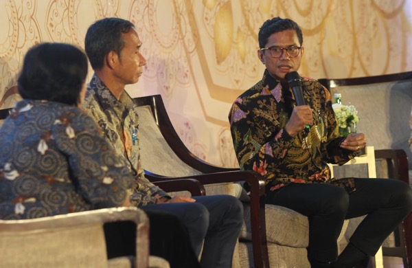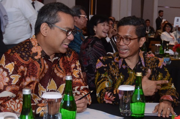 Direktur Utama PT Bank Tabungan Negara (Persero) Tbk. Pahala N. Mansury bersama Wakil Menteri Keuangan Indonesia Suahasil Nazara di sela acara BTN Market Outlook 2020, di Jakarta, Senin (3/1). Bank BTN fokus pada oembiayaan rumah untuk mendukung perekonomian nasional dengan tetap berhati-hati mengingat kondisi geo politik dan ekonomi yang masih belum menentu di tahun tikus logam. Namun demikian Perseroan tetap memasang target konservatif pertumbuhan kredit di level 10% pada 2020. Perseroan juga akan berfokus untuk tetap mendorong ketersediaan dana murah dengan melakukan inovasi produk tabungan berbasis digital agar banyak masyarakat menabung di Bank Tabungan. (*)