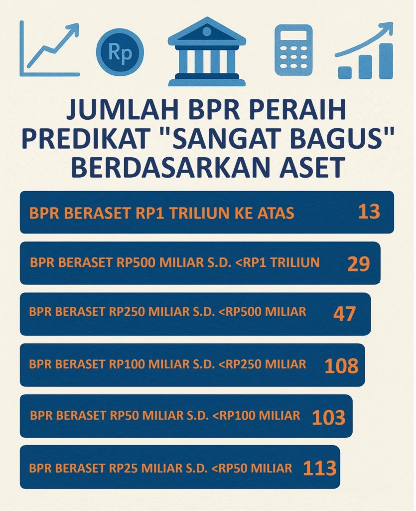 Secara umum, industri BPR menunjukkan pertumbuhan positif hingga akhir kuartal I-2025. Data Biro Riset Infobank (birI) mencatat bahwa aset industri BPR tumbuh sebesar 5,00 persen secara tahunan (year on year), dari Rp193,99 triliun pada Maret 2024 menjadi Rp203,68 triliun per Maret 2025.