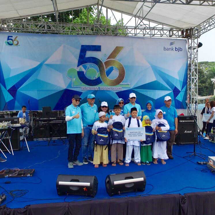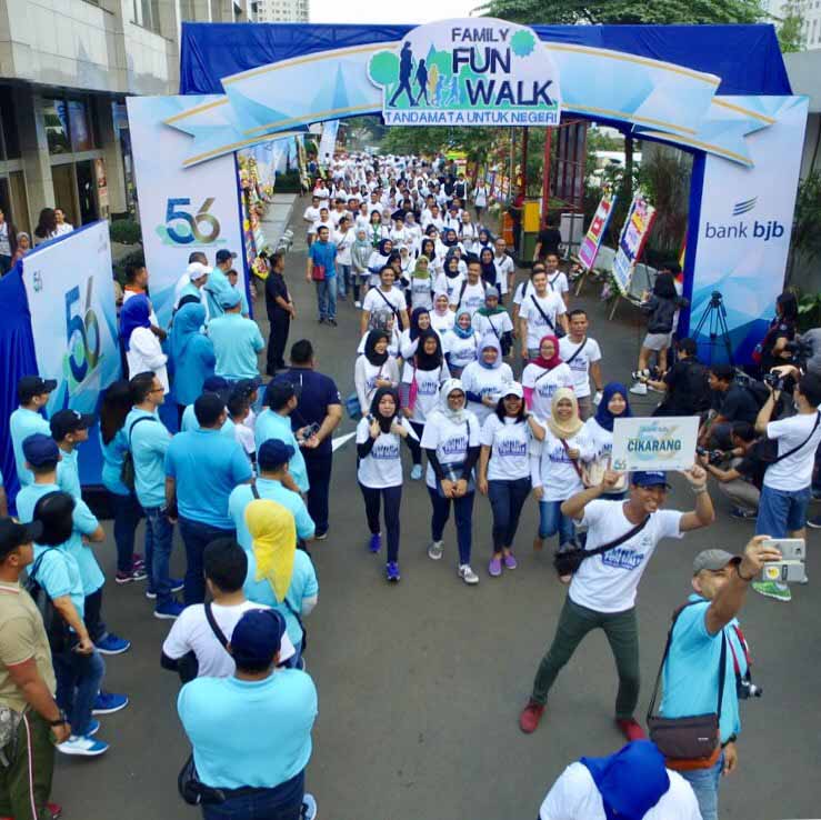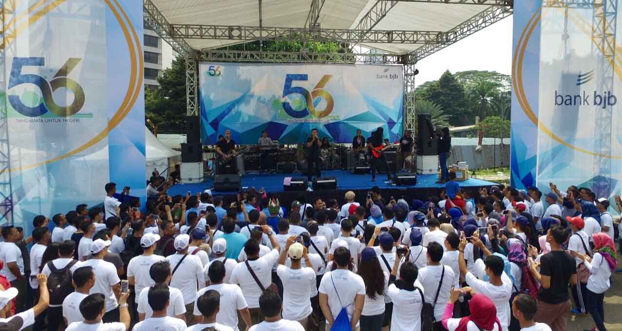 Direktur Utama bank bjb Ahmad Irfan dan Jajaran Direksi serta Komisaris bank bjb yang didampingi oleh Wakil Walikota Jakarta Timur Drs. H. Husein Murad, M. Si, Pemimpin Wilayah II bank bjb Dicky Syahbandinata, Pemimpin bank bjb Kantor Cabang Khusus Jakarta Herawati memotong tumpeng di HUT 56 Bank bjb yang diselenggarakan di Jakarta,Minggu 14 Mei 2017.Rangkaian Hari Ulang Tahun bank bjb ke-56 yang mengangkat tema “Tandamata Untuk Negeri” diselenggarakan di beberapa kota, kali ini bank bjb menyapa masyarakat Ibukota Jakarta,dengan berbagai kegiatan diantaranya Family Fun Walk, Band Performance, Puzzle dan Games. Kurang lebih sekitar 3000 orang ikut dalam acara ini yang juga dipenuhi berbagai hadiah.(*)