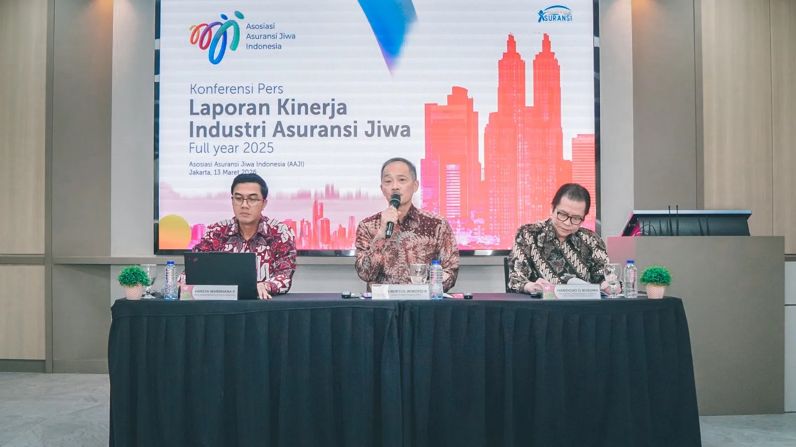 Asosiasi Asuransi Jiwa Indonesia (AAJI) melaporkan kinerja 57 perusahaan asuransi jiwa pada periode Januari–Desember 2025. Industri asuransi jiwa terus menunjukkan komitmennya dalam memperkuat pelindungan bagi pemegang polis sekaligus menjaga kepercayaan masyarakat. Komitmen ini sejalan dengan prinsip industri asuransi jiwa untuk terus bertransformasi, menjunjung tinggi integritas dan serta perluasan akses perlindungan asuransi jiwa yang lebih inklusif bagi masyarakat. Jakarta, 13 Maret 2026 (Foto: Reggy P)