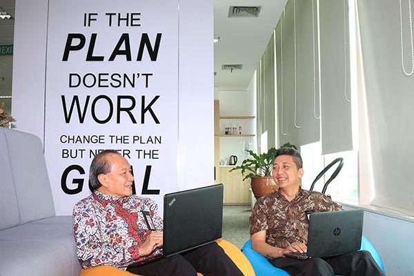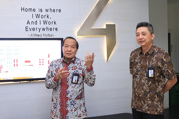 Chief Executive Officer Adira Insurance Julian Noor (kanan) bersama Chief Operation & IT Officer Adira Insurance Donni Gandamana tengah menunjukan suasana ruang kerja “working at home” kepada media di Jakarta, Kamis, 4 Juli 2019. Di era modern, Adira Insurance terus meningkatkan produk dan layanan berbasis teknologi dengan memberikan experience terbaik bagi pelanggan. Adira Insurance melakukan transformasi layanan digital dari hulu hingga hilir, yakni mulai dari informasi dan pembayaran produk, pengajuan klaim hingga monitor status pengerjaan klaim.