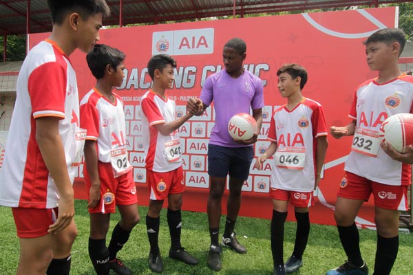 International Development Coach Tottenham Hotspur, Anton Blackwood (tiga kanan) berbincang dengan peserta yang lolos Elitepro Persija yakni Nathan Fariel (tiga kiri) dan 4 peserta lolos seleksi Persija Akademi yakni (ki-ka) Malik Raja Syahbana, Sava Fiprian Januario, Rizky Chandra Abdulmanan, Muhammad Alwi Permana. Kelima pemain berhasil lolos seleksi yang diadakan oleh PT AIA FINANCIAL (AIA) dan Persija Jakarta yang diikuti oleh 50 talenta muda sepak bola lulusan AIA Elite Football Training Camp di Jakarta, Minggu 15 Desember 2019. Program ini merupakan bagian dari kemitraan antara AIA dan Persija yang diluncurkan pada November 2019. AIA Elite Football Training Camp digelar bersama International Development Coach Tottenham Hotspur sejak tahun 2017 di Phuket telah diikuti oleh lebih dari 100 talenta muda sepak bola Indonesia.
