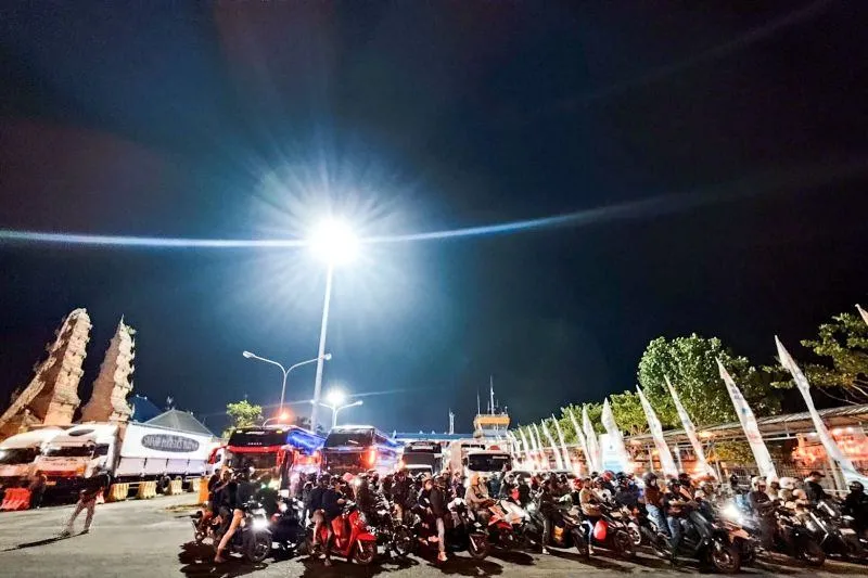 Jakarta – Kemacetan panjang terjadi di jalur menuju Pelabuhan Gilimanuk menjelang penutupan operasional penyeberangan saat Hari Raya Nyepi. Lonjakan kendaraan yang hendak keluar Bali membuat antrean mengular hingga puluhan kilometer menuju Pelabuhan Gilimanuk Bali pada Minggu (16/3).