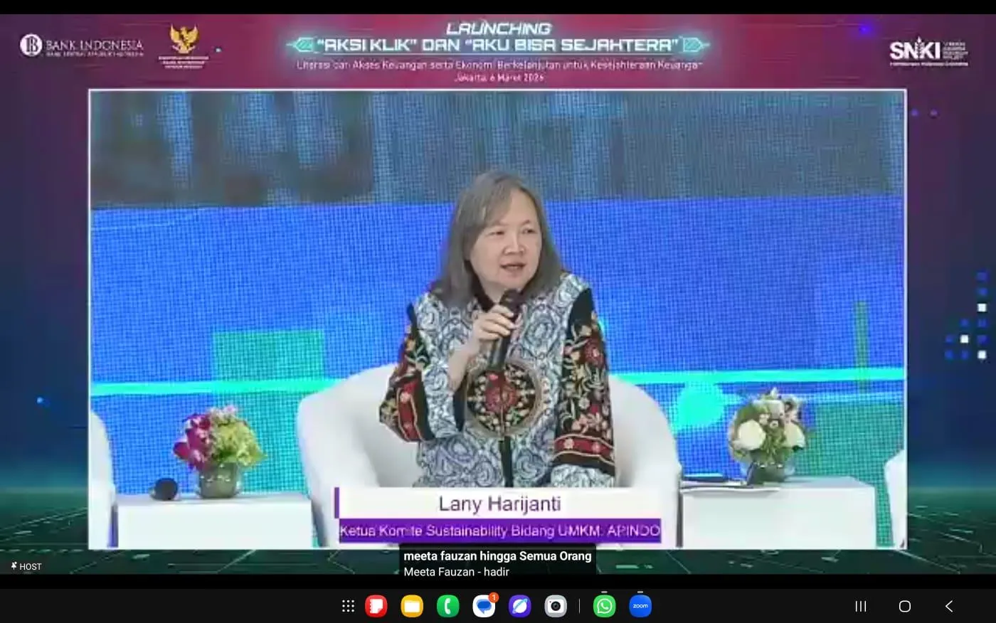 “Kalau di level bisnis besar tidak ada masalah. Mau tidak mau mereka akan kena tekanan, baik dari regulasi, pasar, ataupun investor. Tetapi, untuk UMKM itu memang jauh dari semua ini,” ujar Lany dalam acara peluncuran program “Aksi Klik dan Aku Bisa Sejahtera” yang diadakan Bank Indonesia (BI) secara hybrid, Jumat, 6 Maret 2026.