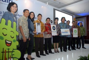 (Kiri-kanan) Co-Founder dan Creative Director Sebangsa Indira B. Widjonarko, Dirut Mandiri Budi G. Sadikin, Co-Founder dan Co-CEO Sebangsa Enda Nasution, Dir. Consumer Banking Hery Gunardi, Co-Founder Johnny Andrean Group Tina Andrean, Founder Johnny Andrean Group Johnny Andrean tengah berbincang sesaat setelah meluncurkan aplikasi “Sahabat BMI” pada platform Sebangsa di Plaza Mandiri, Kamis 13 Agustus 2015. Bank Mandiri memperkenalkan “Sahabat BMI” sebagai aplikasi sosial media pertama di dunia untuk buruh migran. Pada tahap awal, Aplikasi ini diharapkan dapat digunakan sekitar 50.000 Buruh Migran Indonesia (BMI) untuk berkomunikasi dengan sesama BMI serta memperoleh berbagai informasi terkait BMI.(Budi Urtadi)
