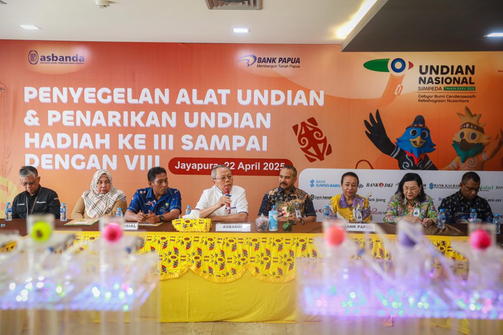 Jayapura – Asosiasi Bank Pembangunan Daerah (Asbanda) dan Bank Papua menggelar penyegelan Alat Undian Tabungan Simpeda Nasional BPD seluruh Indonesia periode ke-2 Tahun XXXV-2025 di Kantor Pusat Bank Papua, Jayapura, Selasa, 22 April 2025.