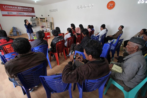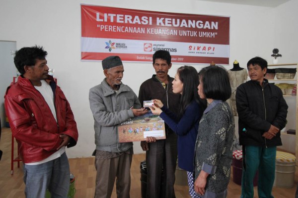 Direktur Asuransi Sinar Mas Dumasi MM Samosir memberikan secara simbolis kartu simas petani bagi petani kopi di Kecamatan Dolok Sanggul dan Kecamatan Pollung, Kabupaten Humbang Hasundutan, Jumat (1/12). Asuransi Sinar Mas melakukan literasi keuangan bagi para petani kopi dan juga UMKM,sekaligus memberikan perlindungan asuransi simas petani bagi 4 ribuan petani kopi di kabupaten Humbang Hasundutan ini. Petani kopi ini merupakan anggota dari 186 kelompok tani yang berada di kecamatan Dolok Sanggul, Kecamatan Pollung, Kecamatan Lintongnihuta, Kecamatan Parlilitan, Kecamatan Onanganjang dan Kecamatan Sijamapolang. (*)
