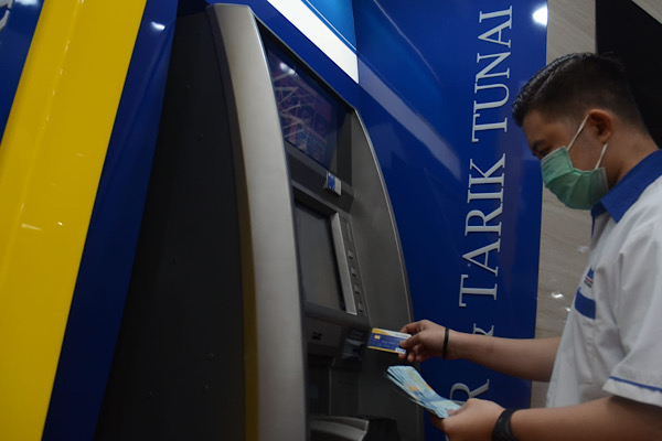 Nasabah sedang mengambil uang di mesin ATM milik PT Bank Tabungan Negara (Persero) Tbk, di Jakarta, Rabu (1/7). ATM Bank BTN menyabet predikat layanan paling prima dari survey “Bank Service Excellence Monitor (BSEM)”. Dari penyelenggaraan survei BESM ke-24, bank yang dinahkodai Pahala N. Mansury sebagai direktur utama BTN tersebut mencatatkan skor layanan ATM tertinggi yakni 89,66%. Angka tersebut naik signifikan dibanding survei pada tahun sebelumnya sebesar 86,10%. (*)
