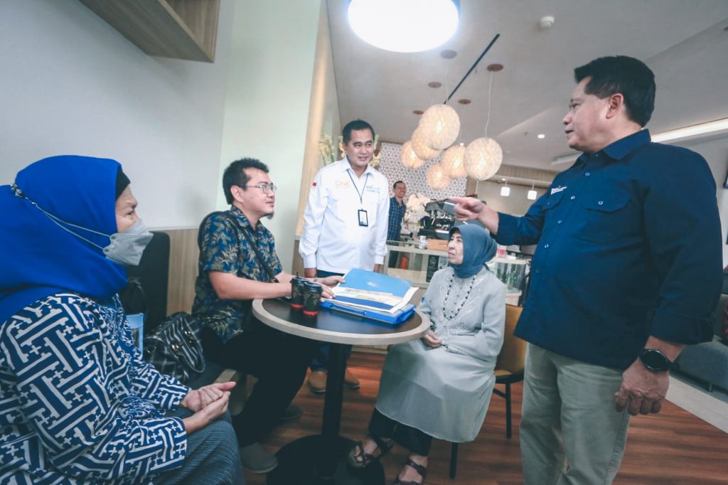 Direktur Utama BSI Hery Gunardi, dan RCEO BSI Jakarta 1 Deden Durachman Sedang meninjau layanan pelunasan biaya Haji nasabah Bank BSI seiring dengan pulihnya layanan cabang dan ATM Bank BSI.