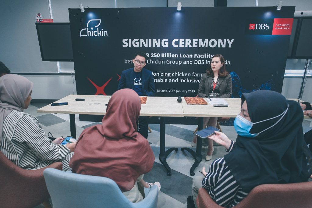 Co-founder dan Chief Executive Officer Chickin Tubagus Syailendra W. (kiri) bersama Executive Director, Head of Mid Cap, Institutional Banking Group PT Bank DBS Indonesia Natalia Y. Ratulangi saat memberikan keterangan pada media, usai menandatangani pinjaman (loan) oleh Bank DBS Indonesia untuk Chickin di Jakarta.Executive Director, Head of Mid Cap, Institutional Banking Group PT Bank DBS Indonesia Natalia Y. Ratulangi (kanan) bersama Co-founder dan Chief Executive Officer Chickin Tubagus Syailendra W. (kiri) berjabat tangan usai menandatangani pinjaman (loan) oleh Bank DBS Indonesia untuk Chickin di Jakarta, Senin 20 Januari 2025.