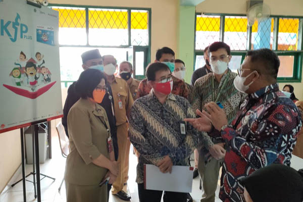 Sekretaris Perusahaan Bank DKI, Herry Djufraini (kanan), Deputi Direktur Informasi, Dokumentasi, dan Edukasi Perlindungan Konsumen Kantor OJK Regional 1 DKI Jakarta dan Banten, F.A Purnama Jaya (kedua dari kanan), Kepala Suku Dinas Pendidikan Wilayah Utara 1, Sri Rahayu Asih Utami (kedua dari kiri), dan Kepala Sekolah SMA 111 Jakarta, Ujang Suherman (kiri) foto bersama pelajar penerima kartu Jakarta Pintar Plus dalam pembukaan acara program Literasi Keuangan dan Sentra Vaksinasi di SMA 111 Jakarta, Selasa, 31 Agustus 2021. Bank DKI terus mendorong literasi dan inklusi keuangan kepada komunitas pelajar melalui program Satu Rekening dan Pelajar (KEJAR). Per Juli 2021, Bank DKI telah memiliki 1,31 juta Number of Account KEJAR yang terdiri dari 1,12 juta pemegang KJP, 183 ribu pemegang rekening Tabungan Simpel, serta non-Tabungan Simpel dan non-KJP sebanyak 4,3 ribu rekening. Terkait program Vaksinasi, sebelumnya, Bank DKI telah melaksanakan kegiatan Sentra Vaksinasi yang dimulai sepanjang Bulan Juli hingga Agustus 2021 dengan total pemberian vaksinasi sebanyak 7.847 orang.