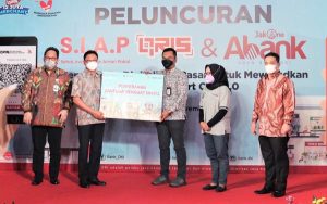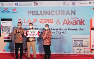 Wakil Gubernur DKI Jakarta Ahmad Riza Patria, Kepala Kantor Perwakilan Wilayah Bank Indonesia DKI Jakarta Onny Widjanarko dan Direktur Utama PT Bank DKI Fidri Arnaldy saat peluncuran JakOne Abank di Pasar Santa, Jakarta, Kamis 25 November 2021. PT Bank DKI terus berkomitmen mendorong penerapan inklusi keuangan di DKI Jakarta dengan meluncurkan JakOne Abank di Pasar Santa, Jakarta Selatan yang menjadi proyek percontohan digitalisasi pasar melalui program SIAP QRIS yang diusung oleh Bank Indonesia (BI).