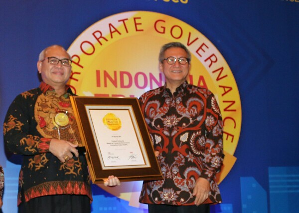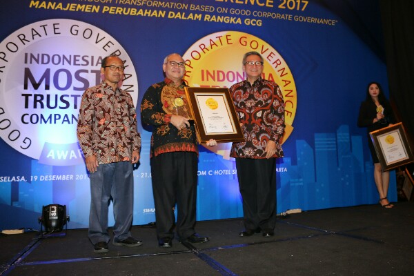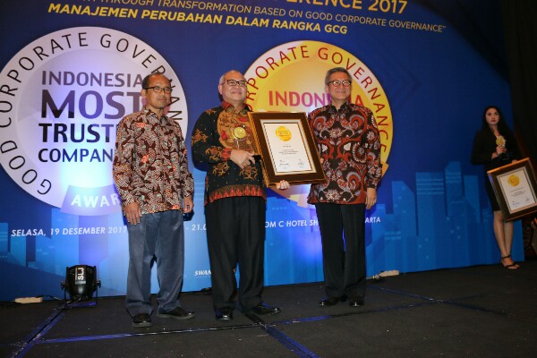 Direktur Kepatuhan PT. Bank DKI, Budi Mulyo Utomo (tengah) bersama Ketua Tim CGPI, Gendut Suprayitno (kanan) dan Pemimpin Redaksi Majalah SWA, Sujatmaka (kiri) menerima penghargaan pada acara Indonesia Corporate Governance Award 2017 di Jakarta, (19/12). Pada kesempatan tersebut, Bank DKI mendapatkan predikat sebagai perusahaan terpercaya untuk ke 8 (delapan) kalinya dalam Indonesia Corporate Governance Award 2017 yang diberikan oleh Indonesian Institute Corporate Governance dan Majalah SWA. (*)