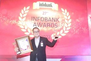 Direktur Keuangan & Strategi Bank DKI, Romy Wijayanto menerima penghargaan pada ajang Infobank Award 2022 dengan predikat kinerja “sangat bagus” pada kategori Special Performance Bank kategori Kelompok Bank Modal Inti (KBMI) 2 dengan Aset Rp50 Triliun Sampai dengan di Bawah Rp100 Triliun, Golden Trophy (Predikat kinerja “Sangat Bagus” Selama 5 Tahun Beruntun dan Predikat kinerja “Sangat Bagus” kategori Kelompok Bank Modal Inti 2 (KBMI) 2 dengan Aset Rp50 Triliun Sampai dengan di Bawah Rp100 Triliun, yang diadakan di Jakarta, Kamis, 25 Agustus 2022.