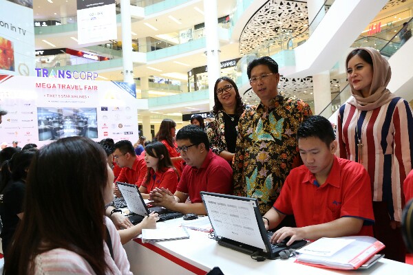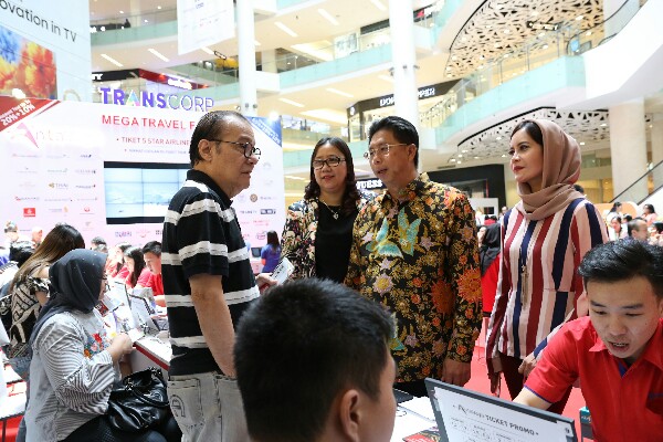 Direktur Utama Bank Mega Kostaman Thayib didampingi oleh Direktur AntaVaya Ida Wijanty (kiri) dan Direktur AntaVaya Ratih Prabandari tengah berbincang dengan pengunjung. Mega Travel Fair yang pada tahun ini diadakan di 10 kota besar di Indonesia rutin diadakan 2 kali setahun khusus untuk pemegang Kartu Kredit Bank Mega. Program Mega Travel Fair menawarkan berbagai penawaran menarik untuk tiket pesawat dan paket tour serta cruise. Selama penyelenggaraan Mega Travel Fair secara nasional menargetkan sales volume sebesar Rp.250 miliar dengan akuisisi kartu kredit sebanyak 5.000 kartu. (*)
