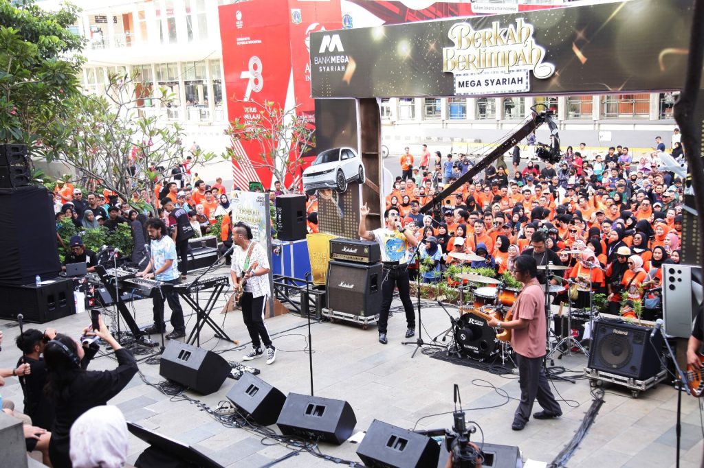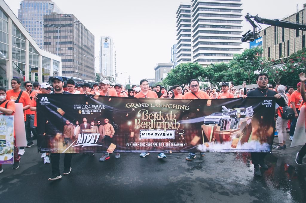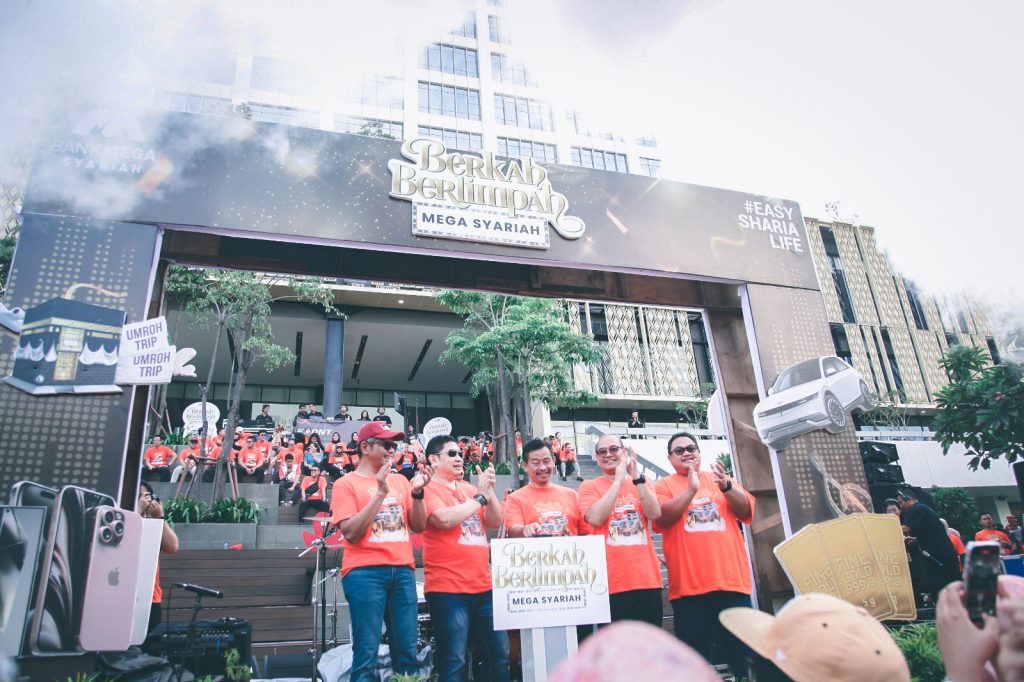 Bank Mega Syariah melakukan Grand Launching Program Berkah Berlimpah Mega Syariah (BBM), disala Car Free Day (CFD), di Sarinah, Thamrin, Jakarta, Minggu, 3 Maret 2024Acara peluncuran Program Berkah Berlimpah Mega Syariah dimeriahkan penampilan Grup band Nidji yang juga menghibur warga yang tengah melakukan aktivitas di Car Free Day (CFD), di Sarinah, Thamrin, Jakarta.Direktur Risk & Compliance Bank Mega Syariah, Marjana, Direktur Bisnis Rasmoro Pramono Aji, Staff Khusus Dewan Pengawas Syariah Prof. Dr. Muhammad Maksum, Direktur Operasi & Transformasi Slamet Riyadi dan Digital Business Group Head BMS Sigit Suryawan (kiri ke kanan) memencet tombol saat Grand Launching Program Berkah Berlimpah Mega Syariah (BBM), disala Car Free Day (CFD), di Sarinah, Thamrin, Jakarta, Minggu, 3 Maret 2024.