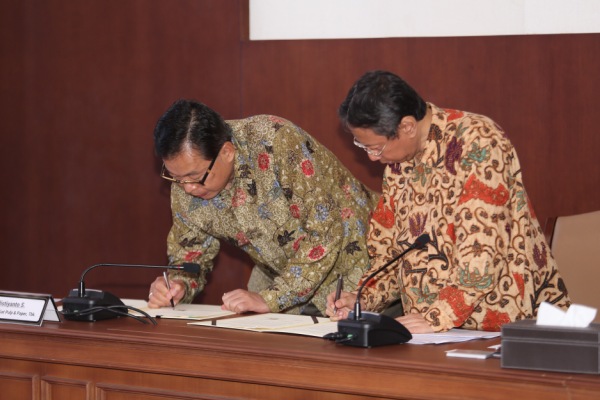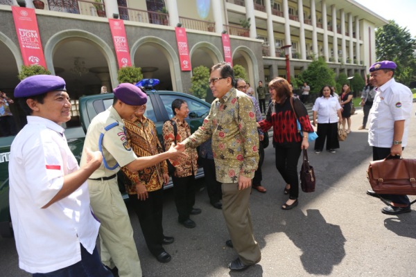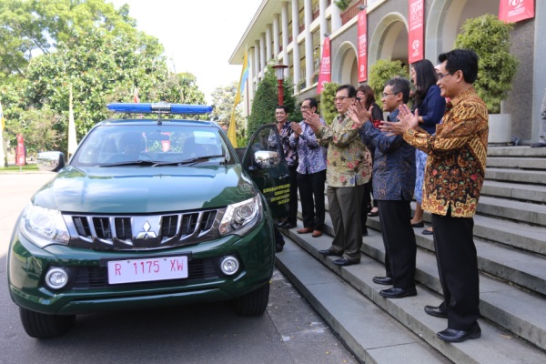 Managing Director Sinarmas, Gandi Sulistyanto (kiri) bersama Wakil Rektor SDM dan Aset UGM, Prof. Dr. Ir. Bambang Agus Kironoto (tengah) disaksikan Rektor UGM, Prof. Ir. Panut Mulyono, M.Eng., D.Eng menandatangani berita acara penyerahan hibah pemberian sumbangan mobil operasional di kampus UGM, Yogyakarta, Senin (4/12). Sinarmas memberi sumbangan 1 unit mobil operasional kepada Menwa UGM sebagai implementasi dukungan Sinarmas terhadap lembaga pendidikan tinggi yang senantiasa konsisten, tak saja mengedepankan tradisi ilmiah serta riset yang kuat, namun juga tradisi kebangsaan dan aktivisme yang panjang. (*)