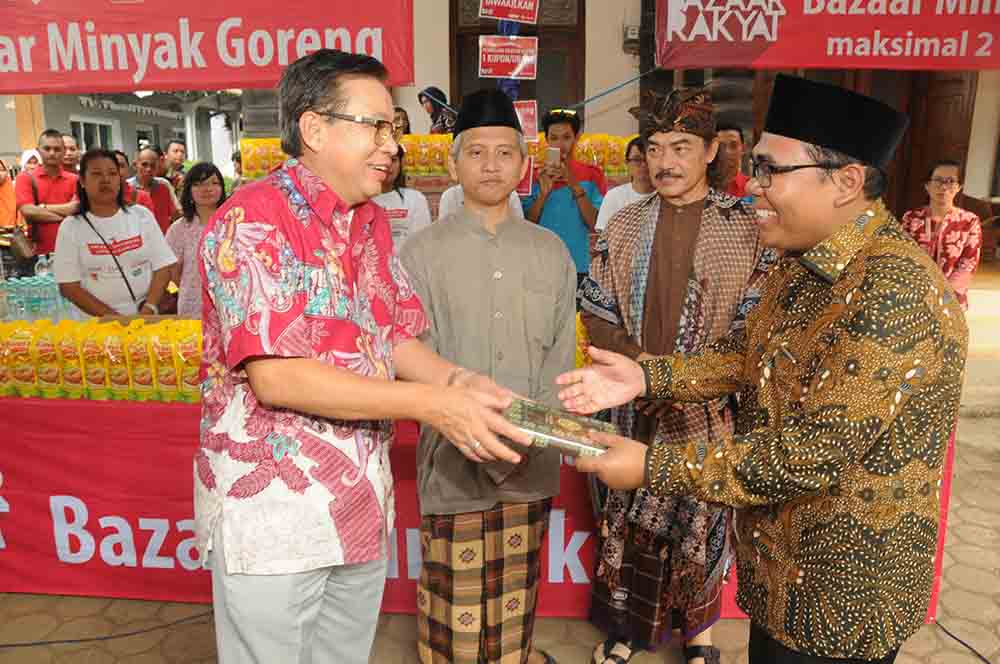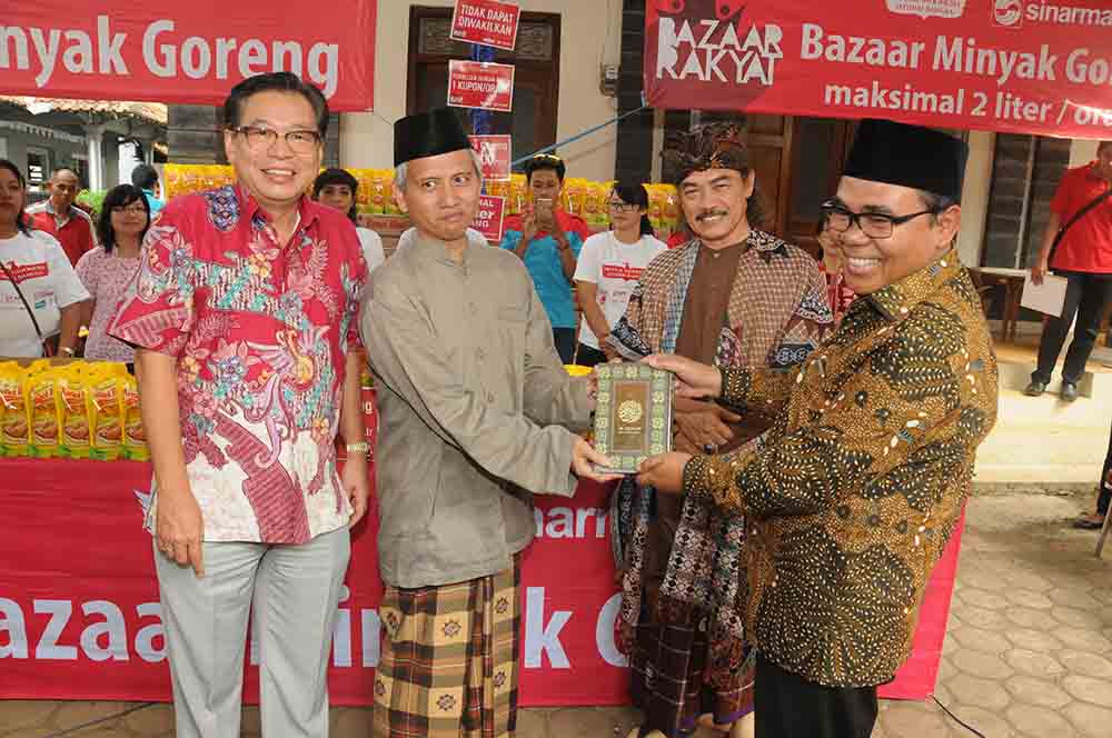 Managing Director Sinar Mas, G. Sulistiyanto didampingi Bupati Pekalongan, Asip Kholbihi dan Kyai Haji Nuril Arifin Husein (Gus Nuril) melakukan penjualan minyak goreng perdana pada acara Bazaar Rakyat usai menerima Wakaf Al Qur’an dari Sinar Mas di Pondok Pesantren Miftahul Huda, Desa Wonopringgo, Pekalongan, Jawa Tengah Sabtu 17 Juni 2017. Sinar Mas melakukan Wakaf Al-Quran dan juga menyalurkan 2.500 liter minyak goreng yang dijual dengan harga Rp. 8.000 per liter. Kegiatan ini untuk membantu warga dalam hal kebutuhan pokok pada bulan Ramadhan.(*)