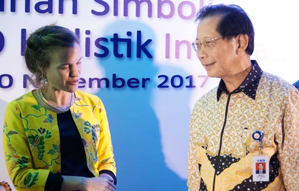 Jahja Setiaatmadja, Presiden Direktur BCA (Tengah), Lauren Rumble, Deputy Representative UNICEF, (kedua kiri), Inge Setiawati, Corporate Social Responsibility BCA, (kiri), Gregor Henneka Chief of Private Sector Fundraising, (kedua kanan), Sapto Rachmadi, Senior Vice President CSR, (kanan) di Jakarta, Senin 20 November 2017.