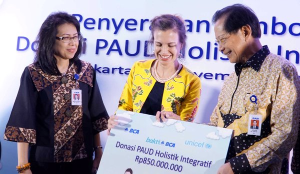 Memperingati Hari Anak Sedunia yang jatuh pada tanggal 20 November,PT Bank Central Asia Tbk (BCA), melalui program Bakti BCA kembali berpartisipasi mendukung peningkatan kualitas Pendidikan Anak Usia Dini yang holistik dan integratif dengan memberikan donasi kepada United Nation INternational Children’s Emergency Fund (UNICEF) sebesar Rp850 juta. (*)