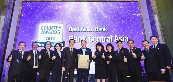 Direktur Utama PT Bank Central Asia Tbk (BCA), Jahja Setiaatmadja menerima dua penghargaan sekaligus, yakni Bank Terbaik di Indonesia dan Bank Asia Terbaik untuk keempat kalinya dalam ajang FinanceAsia Country Awards for Achievement 2019 di Hong Kong, Kamis (27/06).
