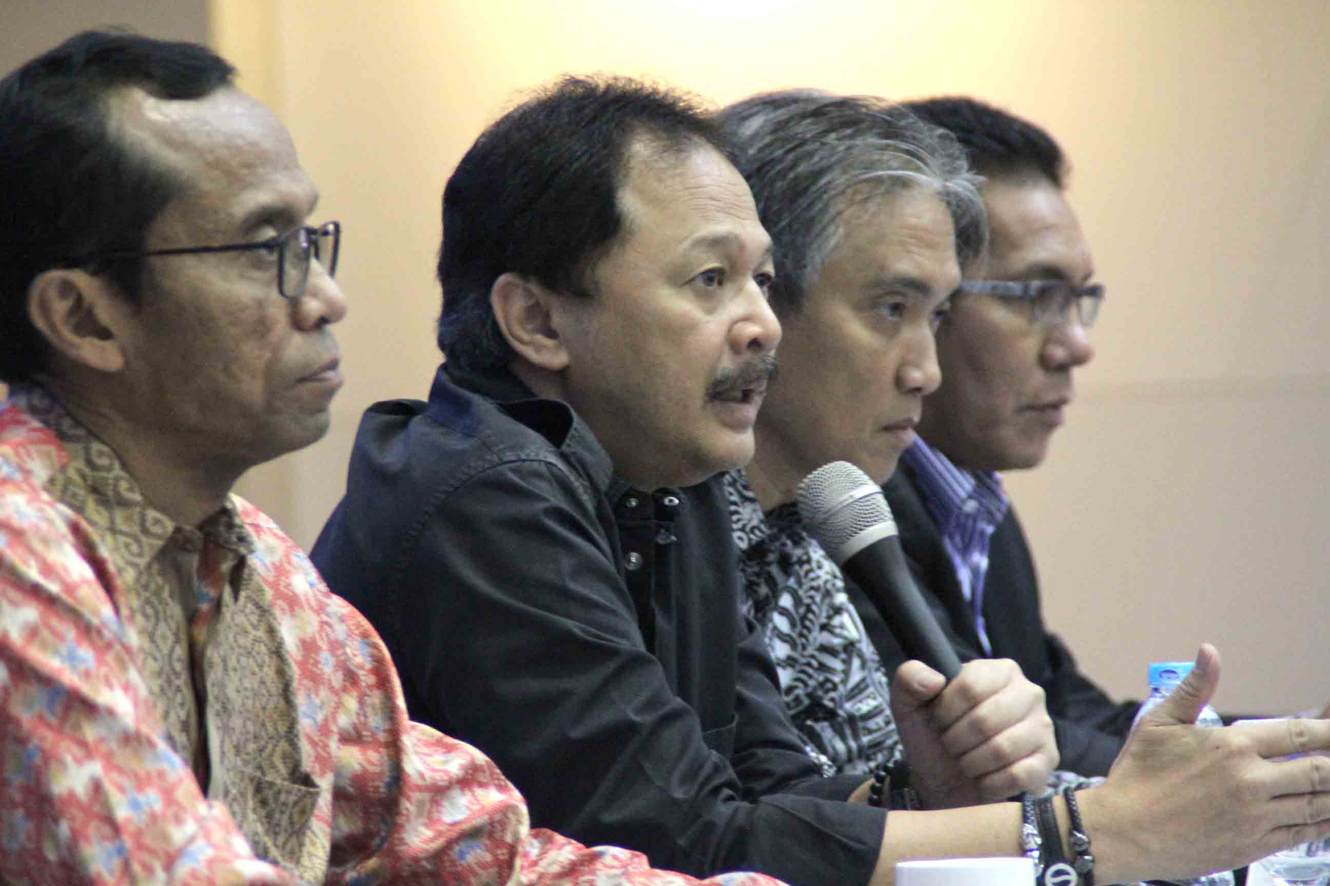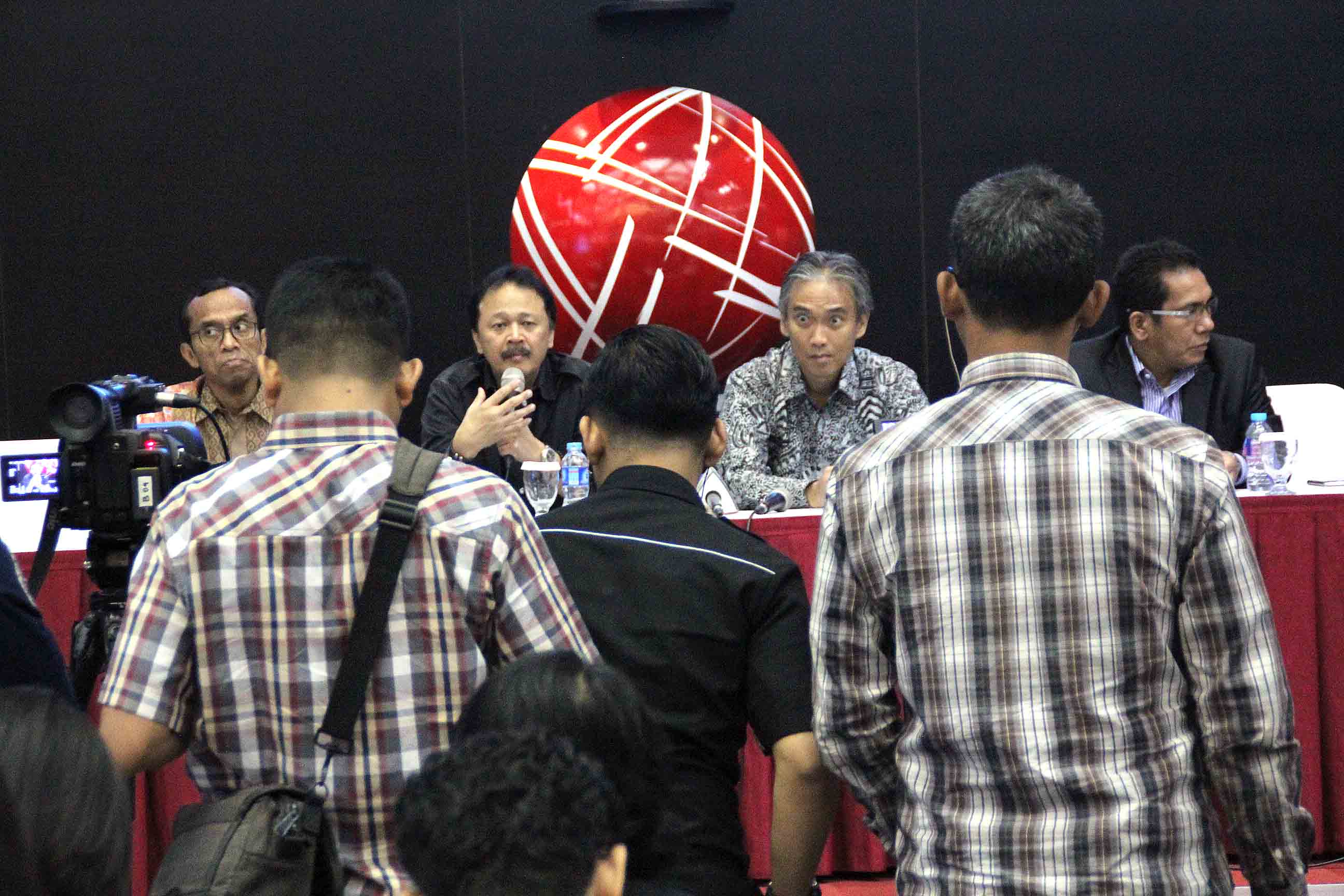 Direktur Utama Bursa Efek Indonesia (BEI) Tito Sulistio didampngi Direksi Bursa Efek Indonesia lainnya saat temu media terkait gangguan teknis pada penyebaran informasi Datafeed di Bursa Efek Indonesia ,Jakarta Senin 10 juli 2017.Gangguan pada Datafeed yang terjadi pukul 08.52 hingga pukul 10.00,PT Bursa Efek Indonesia (BEI) meminta maaf kepada seluruh pelaku pasar modal Indonesia. Direktur Utama BEI Tito Sulistio mengatakan, sempat terjadi gangguan dalam penyebaran informasi atau datafeed. Akibatnya transaksi perdagangan saham hari ini tertunda 1 jam.(Budi Urtadi)