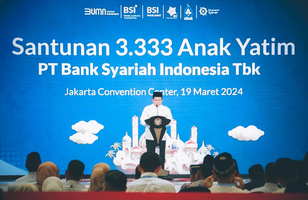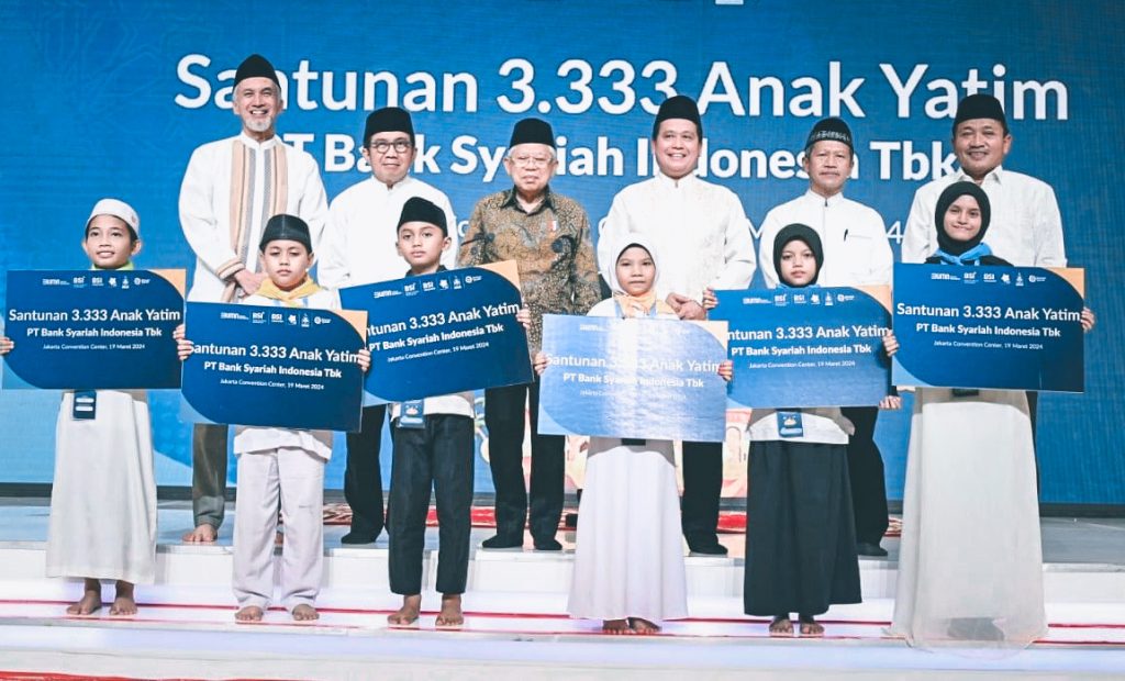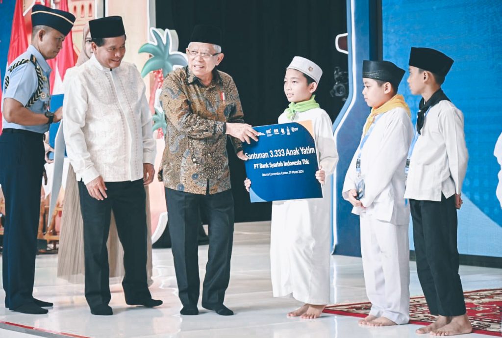 Wakil Presiden (Wapres) K.H. Ma’ruf Amin menghadiri acara Santunan 3.333 Anak Yatim Tahun 2024 yang diselenggarakan oleh PT Bank Syariah Indonesia Tbk (BSI). Jumlah penerima santunan ini selaras dengan milad ketiga BSI tahun ini, seperti perayaan milad sebelumnya yaitu menyantuni 1.111 anak yatim pada milad pertama dan 2.222 anak yatim di milad kedua. Acara ini diselenggarakan sebagai salah satu upaya untuk terus mengalirkan kemaslahatan kepada masyarakat, dan berbagi keberkahan di Bulan Ramadan 1445 H.