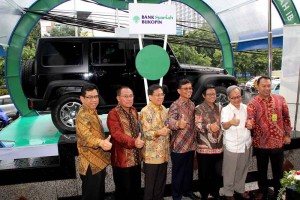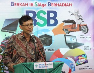 Direktur Utama PT Bank Syariah Bukopin (BSB) Riyanto (tengah) bersama jajaran Direksi dan Komisaris mengacungkan jempol usai meresmikan Program Tabungan Berhadiah “Berkah iB SiAga Berhadiah” di Kantor Pusat BSB jakarta,Kamis 25 Februari 2016.Program Tabungan berhadiah bertajuk “Berkah Tabungannya,Berkah Juga Hadiahnya” ini Sebagai bentuk apresiasi dan loyalty nasabah.berlangsung dari Februari 2016 – Januari 2017,dengan hadiah 6(enam) Scooter Peugeot,9 Paket Umroh ,9 Honda Vario 125 CBS,12 Ipad Air,12 Camera Go Pro Hero 4,15 Netbook HP,15 Samsung Galaxy Tab S2,18 TV LED Sharp Aquos 32′ dan 18 Samsung Galaxy J2..Dengan saldo rata-rata hanya Rp.100.000,- memperoleh 1(satu) poin dan berlaku kelipatannya akan mendapat 1(satu) nomor undian.Khusus untuk undian Grand Prize yang berhadiah 1(satu) Mobil Jeep Wrangler Rubicon,minimal 50 poin yang dihitung berdasar saldo rata-rata harian mulai periode program.(Budi Urtadi)