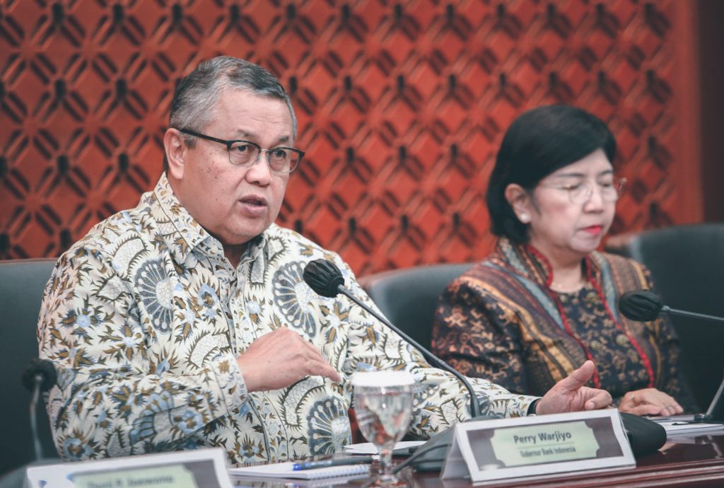 Gubernur Bank Indonesia (BI) Perry Warjiyo menjawab pertanyaan beberapa wartawan, pada saat RDG Bank Indonesia, Kamis 25 Mei 2023.