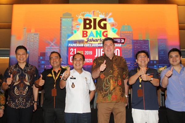 Direktur Utama PT Expo Indonesia Jaya Indra Picazzo (kiri) bersama Direktur PT JI EXPO Kemayoran Ralph Scheunemann (kedua dari kiri), VP SBU Loyalty & Ancilly Revenue Garuda Indonesia Jubi Prasetyo (kedua dari kanan) serta Komisaris & Direktur Operasional PT Expo Indonesia Jaya Novthaly Hetharia (kanan) berbincang usai memberikan paparannya dengan sejumlah wartawan di Jakarta, Rabu (27/11). Untuk ke-3 kalinya PT Expo Indonesia Jaya menggelar event Big Bang Jakarta, yaitu sebuah pameran cuci gudang terbesar di akhir tahun yang akan di gelar pada 21 Desember 2019 hingga 01 Januari 2020 yang akan berlangsung di JI EXPO Kemayoran Jakarta. (*)
