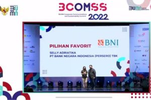 Menteri BUMN Erick Thohir (kanan) memberikan penghargaan kepada VP Corporate Communication & CSR PT Bank Negara Indonesia (Persero) Tbk. (BNI) Selly Adriatika sebagai pemenang juara favorit Corporate Communication of the year di Jakarta, Rabu, 23 Maret 2022. Kesuksesan tersebut diraih karena telah meningkatkan citra BNI sebagai Bank Global Terbaik Indonesia di masyarakat melalui program komunikasi di media konvensional, digital dan Media Sosial serta mendapatkan penghargaan Pemimpin Public Relation Berpengaruh 2021. Sellian itu berhasil juga membangun citra BNI sebagai Pioneer Green Banking, dan mendapatkan penghargaan Gold Rank – Asia Sustainability Reporting Rating 2021 selama 2 tahun berturut-turut.