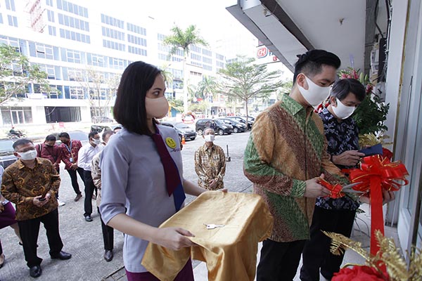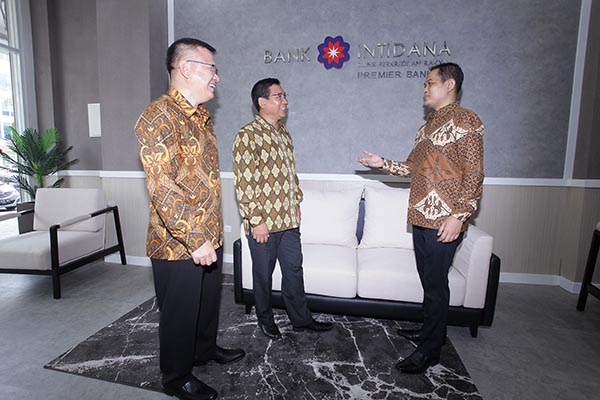 Komisaris Utama BPR Intidana Sukses Makmur, Handy Widjaja, Direktur Utama BPR Intidana Sukses Makmur, Polycarpus Feriyanto, Direktur Kepatuhan Wage Abdi Pradja dan Direktur Eddy S. Hertanto (kanan ke kiri) tengah berbincang-bincang usai pembukaan kantor cabang BPR Intidana Sukses Makmur di Komplek Ruko Metro Broadway di kawasan Pantai Indah Kapuk (PIK) Jakarta Utara, Jumat, 26 Juni 2020. Hadir dengan mengusung konsep Premier Banking mengingat kawasan ini merupakan kawasan premium. Diharapakan kehadiran BPR Intidana dikawasan ini, fungsi intermediasi perbankan kepada nasabah lebih baik lagi untuk mendukung perekonomian bangsa.