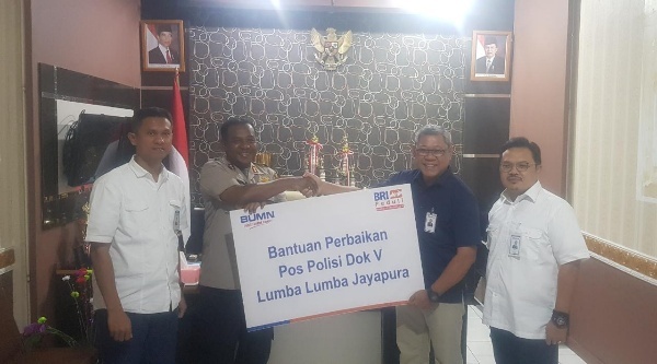 (Dari kiri ke kanan) Wakil Pemimpin Wilayah BRI Jayapura Tramiaji, Pemimpin Wilayah BRI Jayapura Gede Winata, Kepala BPBD Kabupaten Jayapura Sumartono, Kepala BPBD Kota Jayapura Bernad Lamia dan Pemimpin Cabang Sentani Ermana saat penyerahan bantuan BRI Peduli untuk korban terdampak kerusuhan di Jayapura, Papua, Senin (2/9). Bantuan tersebut berupa sembako senilai Rp75 juta untuk para korban terdampak yang diserahkan melalui Walikota Jayapura Benhur Tommy Mano. Juga untuk mendukung upaya pemerintah dalam mempercepat upaya pemulihan wilayah Papua pasca kerusuhan, BRI menyumbangkan 3 perahu kepada Badan Penanggulangan Bencana Daerah (BPBD) untuk membersihkan sungai. Perseroan juga membantu perbaikan pos polisi yang mengalami kerusakan. (*)