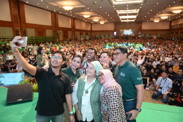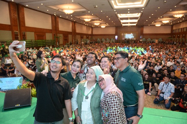 Direktur Konsumer BRI Handayani (dua kiri), dan Direktur Mikro dan Kecil BRI Priyastomo Selfi bersama peserta spirit of Millennials: Green Festival di Jakarta Convention Center (31/1/2019). Acara ini bertujuan untuk meningkatkan kepedulian dan minat generasi millennials terhadap gaya hidup ramah lingkungan, urban farming dan agrikultur di Indonesia serta mendorong lahirnya ide ide dan inovasi baru di sektor agrikultur. (*)