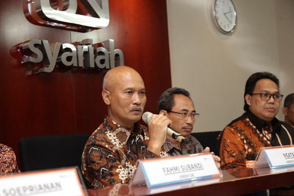 Direktur Utama BRI Syariah Ngatari (ketiga dari kiri) bertumpu tangan dengan jajaran direksi dan komisaris saat diperkenalkan pada media di Jakarta, Selasa, 30 April 2019. Untuk pertama kalinya, PT. Bank BRIsyariah, Tbk. (BRIsyariah) menyelenggarakan Rapat Umum Pemegang Saham Tahunan (RUPST) sejak resmi tercatat di Bursa Efek Indonesia pada Tanggal 9 Mei 2018 lalu. RUPST tersebut telah menyetujui enam agenda, di antaranya persetujuan laporan tahunan termasuk penyampaian laporan pertanggungjawaban realisasi penggunaan dana hasil penawaran umum perdana saham perseroan (“Inital Public Offering/IPO”) tahun 2018 dan perubahan susunan pengurus yang berlaku efektif setelah mendapatkan persetujuan OJK dan memenuhi ketentuan yang berlaku. Susunan manajemen baru diharapkan dapat mendorong akselerasi implementasi strategi inisiatif BRIsyariah selama 5 tahun ke depan.
