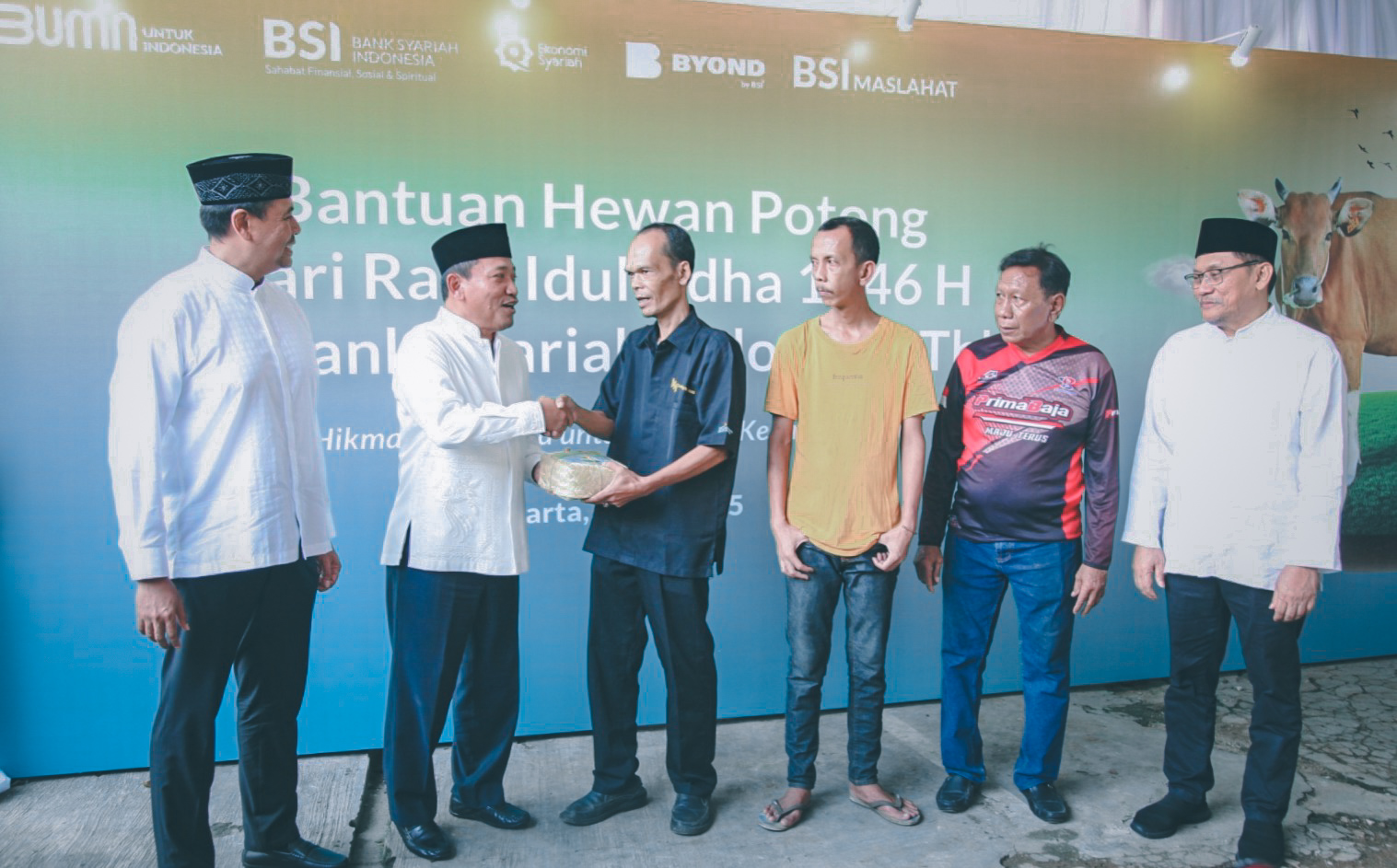 Dalam momen Iduladha 1446 Hijriah, PT Bank Syariah Indonesia Tbk (BSI) mendistribusikan penyaluran hewan kurban kepada dhuafa sebanyak 15.272 hewan terdiri dari 379 ekor sapi dan 14.893 ekor kambing. Jumlah ini meningkat 144% dari periode yang sama tahun lalu. Hal ini didukung layanan pembelian hewan melalui superapps BYOND by BSI dan BSI Hasanah Card.