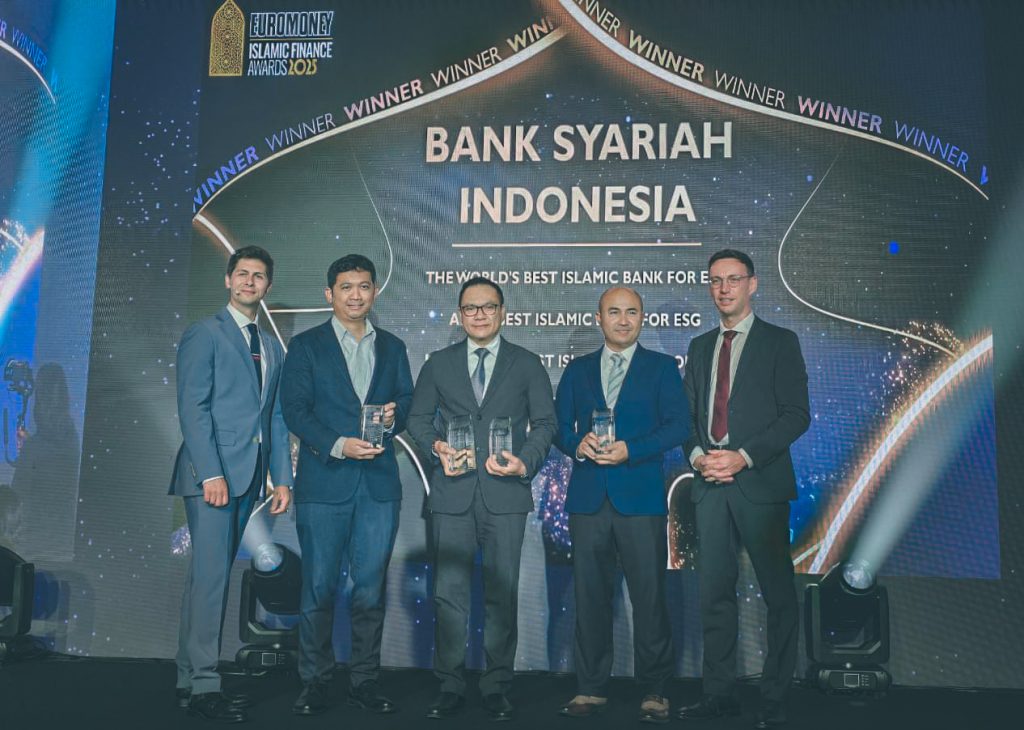 BSI mencatatkan prestasi gemilang pada ajang Euromoney Islamic Finance Awards 2025 dengan meraih penghargaan bidang Environmental, Social, & Governance (ESG) dan Wealth Management. BSI menjadi satu-satunya bank syariah yang berhasil meraih tiga kategori ESG. Yakni The World’s Best Islamic Bank for ESG, Asia’s Best Islamic Bank for ESG, dan Indonesia’s Best Islamic Bank for ESG. Selain itu, BSI juga berhasil mendapatkan Indonesia’s Best Islamic Bank for Wealth Management. Foto BSI