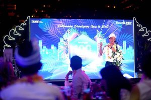 Wakil Direktur Utama Bank BTN Nixon LP Napitupulu bersama Direktur Consumer Bank BTN Hirwandi Gafar dan Kepala Divisi Non Nonsubsidized Lending Division (NSLD) Bank BTN, Iriska Dewayanti berbincang dengan para pengembang dalam acara 100 Billion Achievement KPR Non Subsidi bersama Mitra Developer di Nusa Dua, Bali, Kamis, 31 Maret 2022. Bank BTN mengajak para pengembang dengan bersinergi mendorong suksesnya program sejuta rumah guna mengurangi backlog perumahan yang mencapai angka 11 juta unit. Bank BTN juga memberikan kemudahan kepada para pengembang dengan meluncurkan aplikasi BTN for Developer dan suku bunga khusus untuk mendongkrak penjualan rumah.