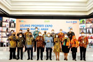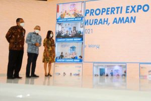Direktur Utama PT Bank Tabungan Negara (Persero) Tbk. Haru Koesmahargyo (kiri) didampingi Direktur Wholesale Risk and Asset Management Elisabeth Novie Riswanti (kanan) bersama Direktur Jenderal Direktorat Jenderal Kekayaan Negara Kementerian Keuangan RI Rionald Silaban (tengah) berbincang di sela acara BTN Lelang Properti Expo 2021 di Menara BTN, Jakarta, Selasa, 7 Desember 2021. Melalui acara tersebut, Bank BTN mengerahkan 25 kantor cabang perseroan untuk memasarkan hampir 250 unit hunian menggunakan skema lelang dengan harga menarik kepada para investor. Secara keseluruhan, perseroan mengincar akan menghimpun dana penjualan lebih dari 1.500 unit rumah sekitar total Rp1,73 triliun pada akhir 2021 nanti.