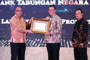 Direktur Consumer PT Bank Tabungan Negara (Persero) Tbk. Hirwandi Gafar (kanan) saat menerima penghargaan “Bank BUMN Dengan Pembiayaan Properti Terbesar di Indonesia”, di Jakarta, akhir pekan lalu. Sebagai pionir di sektor pembiyaan perumahan, Bank BTN terus melakukan berbagai inovasi sehingga mempertahankan posisi sebagai pemimpin pasar Kredit Pemilikan Rumah (KPR). Sejak 1976 hingga Juni 2022, Bank BTN telah menyalurkan KPR untuk lebih dari 5 juta rumah di Indonesia. Bank BTN juga memimpin pasar KPR dengan pangsa sebesar 38,5% per Maret 2022.