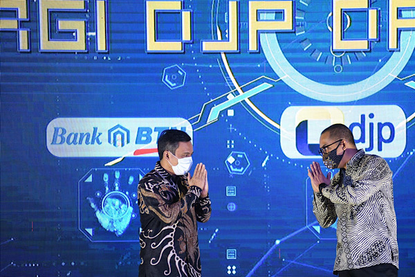 Direktur PT Bank Tabungan Negara (Persero) Tbk. Nixon LP Napitupulu bersama Direktur Jenderal Pajak Suryo Utomo dalam acara Launching Aplikasi Layanan Pajak e-Registrasi dan Validasi NPWP antara Dirjen Pajak RI dan Himbara di Jakarta, Kamis (23/7). Melalui kemitraan ini, nasabah Bank BTN dapat dengan mudah melakukan registrasi dan validasi NPWP melalui kantor cabang Bank BTN. Bank BTN berkomitmen akan mendukung implementasi layanan e-pajak ke tahap lanjutan untuk memberikan kemudahan bagi masyarakat memenuhi kewajiban pajak melalui berbagai e-channel perseroan. (*)