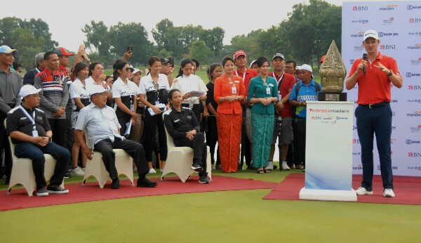 Direktur Utama PT Bank Tabungan Negara (Persero) Tbk. Maryono mendampingi Menteri BUMN Rini M. Soemarno dan Wakil Presiden RI Jusuf Kalla menyerahkan hadiah Tournamen Golf Indonesian Masters kepada Justin Rose, di Jakarta, Minggu (17/12). Dukungan Bank BTN dalam Tournament Golf Indonesian Masters menjadi wujud kepedulian perseroan terhadap dunia golf Indonesia. Bank BTN juga mendukung turnamen yang mengusung konsep Sport Tourism ini, karena sejalan dengan upaya mempromosikan pariwisata di Indonesia. (*)