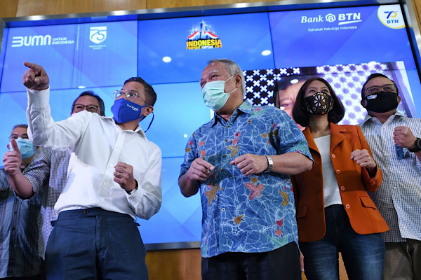 Eko D. Heripoerwanto (kanan) serta Komisioner BP Tapera Adi Setianto (kiri) usai membuka Indonesia Properti Expo Virtual 4D pertama di Indonesia disaksikan oleh Sekretaris Kementerian BUMN, Susyanto lewat daring, di Jakarta, Sabtu (22/8). IPEX Virtual 4D Bank BTN menjadi ajang pameran properti virtual pertama BTN yang dapat diakses di situs ipex.btnproperti.co.id. IPEX Virtual 4D melibatkan lebih dari 200 developer yang menawarkan lebih dari 500 proyek hunian di Jabodebatek serta sejumlah provinsi di Indonesia dengan promosi yg sangat menarik selama pameran berlangsung dari 22 Agustus sampai dengan 30 September 2020. (*)