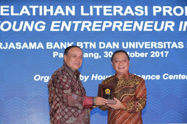 Direktur Utama PT Bank Tabungan Negara (Persero) Tbk Maryono menerima sertifikat Rekor MURI dari Senior Manager MURI, Awan Rahargo atas tercapainya rekor peserta edukasi literasi properti terbanyak di Universitas Sriwijaya, Palembang, Senin (30/10). Acara literasi properti yang digelar di 27 Universitas diikuti oleh lebih dari 11.000 peserta. Acara tersebut merupakan strategi Bank BTN untuk menambah pasokan rumah dari developer baru. Bank BTN lewat Housing Finance Center aktif menggelar rangkaian acara literasi properti dan kerja sama pendidikan serta latihan bidang properti dengan sejumlah perguruan tinggi di seluruh Indonesia. (*)