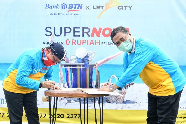 Direktur Consumer and Commercial Lending PT Bank Tabungan Negara (Persero) Tbk. Hirwandi Gafar (kanan) bersama Direktur Utama PT Adhi Commuter Properti Rizkan Firman berbincang usai menandatangani Komitmen Kerja Sama tentang Program Supernova di Jakarta, Sabtu 7 November 2020. Melalui kerja sama tersebut, masyarakat dapat memiliki hunian di 8 proyek apartment milik Adhi Commuter Properti dengan bunga hanya sebesar 6,99,% fixed 1 tahun, uang muka mulai dari 1%, dan cicilan tahun pertama 0 Rupiah. Bank BTN juga memberikan berbagai promo menarik seperti bebas biaya provisi, administrasi, appraisal, pengendapan dana, hingga bebas angsuran pokok selama dua tahun.