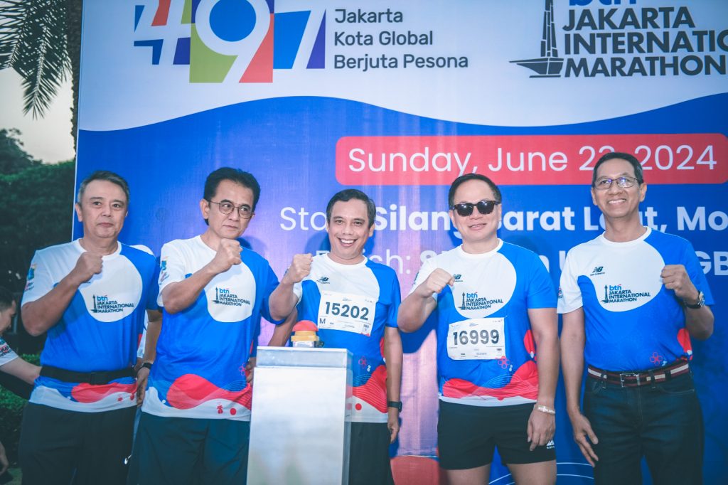 Foto bersama saat pelepasan ajang BTN Jakarta International Marathon (JAKIM) 2024, di Kawasan Monas, Jakarta, Minggu, 23 Juni 2024/Doc BTN