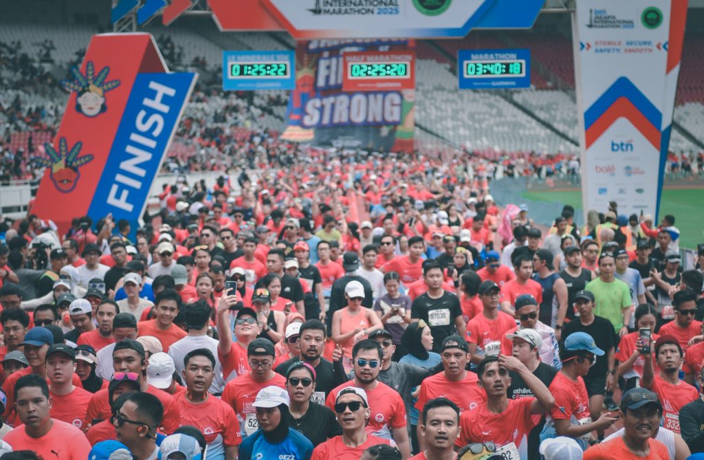 Tahun ini BTN Jakarta International Marathon (JAKIM) 2025 sukses digelar dengan berhasil memecahkan rekor peserta full marathon (FM) terbanyak di Indonesia dengan jumlah lebih dari 4.000 pelari. Adapun total peserta BTN JAKIM 2025 sebanyak 31.000 pelari dengan rincian peserta full marathon atau 42K sebanyak 4.000 pelari, half marathon atau 21K sebanyak 13.000 pelari dan 10K sebanyak 14.000 pelari.Foto : Doc BTN