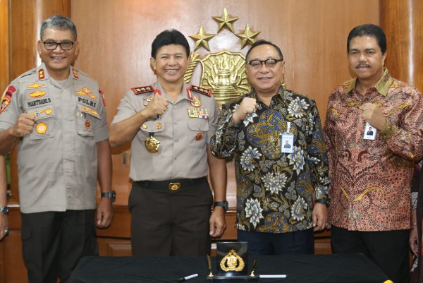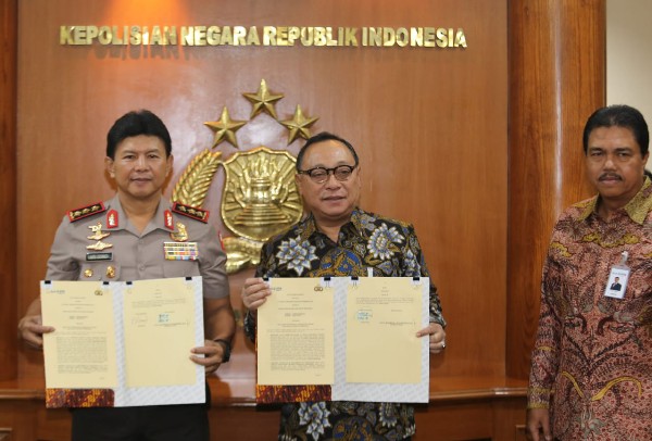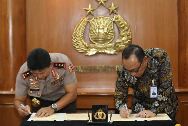 Direktur Utama PT Bank Tabungan Negara (Persero) Tbk, Maryono menjabat tangan Wakil Kepala Kepolisian Republik Indonesia Komjen Pol Ari Dono Sukmanto usai menandatangani Nota Kesepahaman antara Bank BTN dengan Polri tentang bantuan pengamanan, penegakan hukum dan jasa perbankan di Jakarta, Rabu (8/5). Kemitraan Bank BTN dengan lembaga negara termasuk Polri dilakukan untuk menyukseskan program sejuta rumah. Dalam kerjasama ini Bank BTN menyediakan fasilitas tabungan, deposito, giro dan fasilitas kredit, khususnya KPR baik subsidi maupun non subsidi. Selain itu kerjasama ini merupakan wujud nyata dukungan Bank BTN terhadap tugas dan tanggung jawab Polri dalam penegakan hukum di Indonesia. (*)