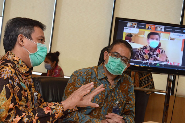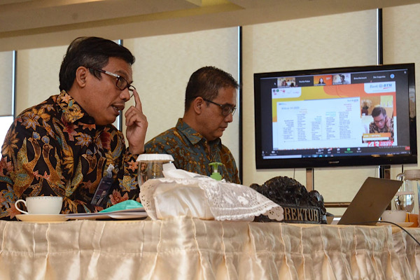 Direktur Finance, Planning, & Treasury PT Bank Tabungan Negara (Persero) Tbk. Nixon LP Napitupulu bersama Kepala Divisi Investor Relations & Research Winang Budoyo memaparkan materi dalam Public Expose Live 2020 secara virtual di Jakarta, Selasa (25/8). Bank BTN optimistis dapat mencapai target perseroan pada akhir tahun 2020 ditopang strategi percepatan bisnis proses, peningkatan kredit, serta likuiditas pasar yang membaik. Di tengah pandemi Covid-19, angka penyaluran kredit perseroan mulai menunjukkan peningkatan. Berdasarkan catatan kinerja semester I/2020, di segmen Kredit Pemilikan Rumah (KPR) Subsidi misalnya, masih mencatatkan kenaikan sekitar 5,84% secara tahunan (year-on-year/yoy) dari sekitar Rp107,34 triliun dari Juni 2019 menjadi sekitar Rp113,61 triliun. (*)