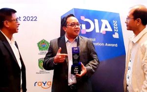 Direktur IT dan Digital PT Bank Tabungan Negara (Persero) Tbk. Andi Nirwoto (kiri) mengangkat piala penghargaan Digital Innovation Awards (DIA) 2022 di Jakarta, pekan lalu. Bank BTN sukses menyabet penghargaan tersebut atas aplikasi BTN Property Mobile yang memudahkan para pemburu rumah untuk mencari serta memiliki hunian idaman. Bank BTN berkomitmen penghargaan tersebut akan menjadi penyemangat untuk terus berinovasi di lini digital banking sehingga dapat memenuhi misi perseroan menyediakan perumahan bagi rakyat Indonesia.